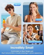 - 2 Magnetic Clip on Microphones(360°Rotatable): This Bluetooth lapel microphone features a lavalier design with 360° rotatable clips, allowing you to adjust it to any angle during recordings. Additionally, the clip is well-protected from damage since you can change its direction without removing it from the microphone.